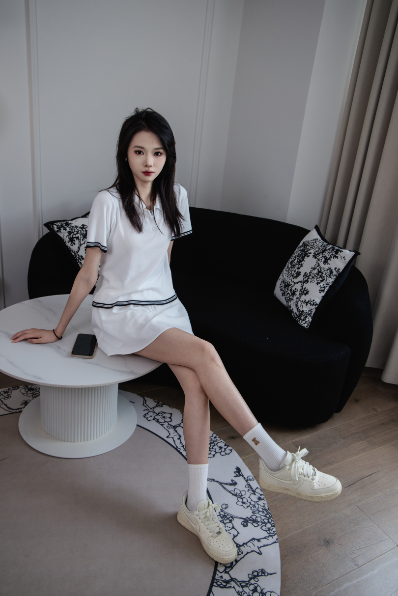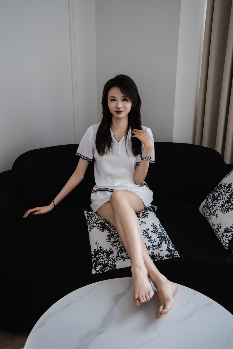 足愉心摄影第56期:模特楚然(搭配:白色T恤、白色短裙、滑板鞋、、白棉袜、裸足)
