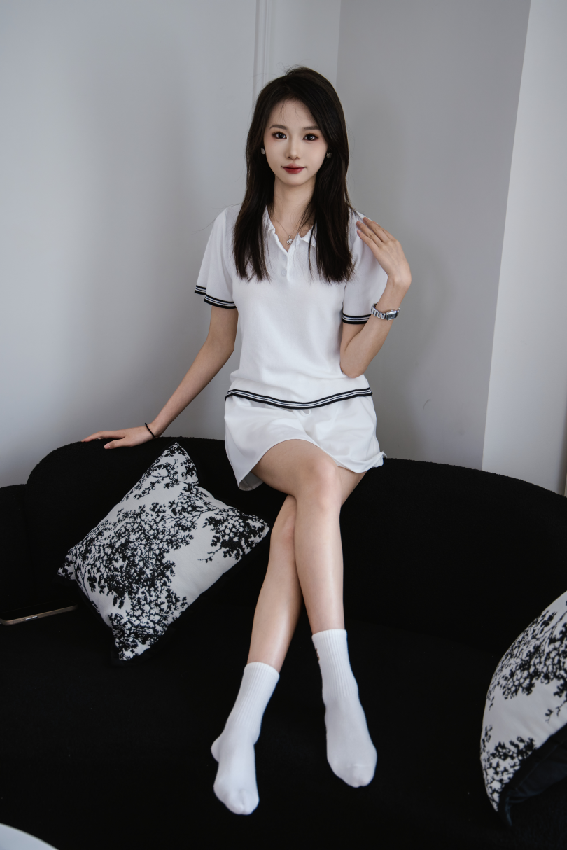 搭配内容:白色T恤、白色短裙、滑板鞋、、白棉袜、裸足