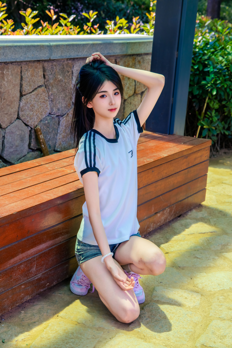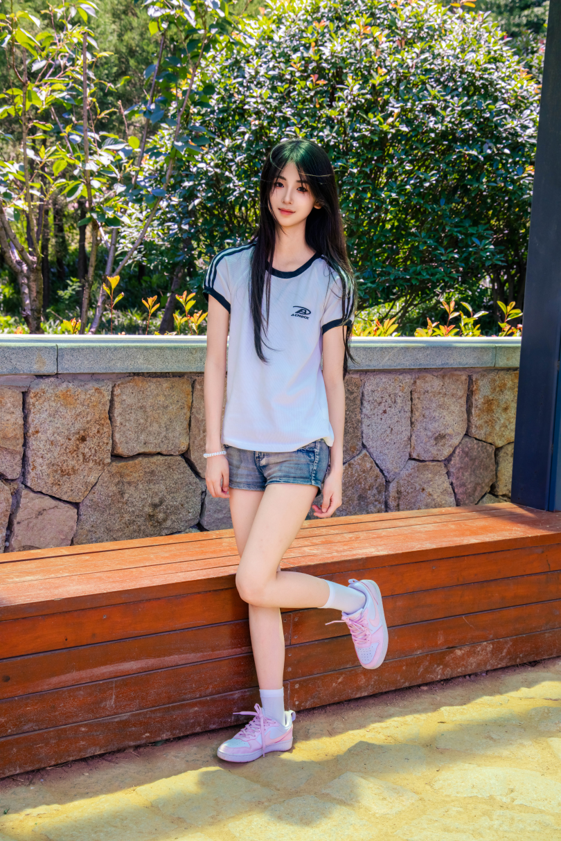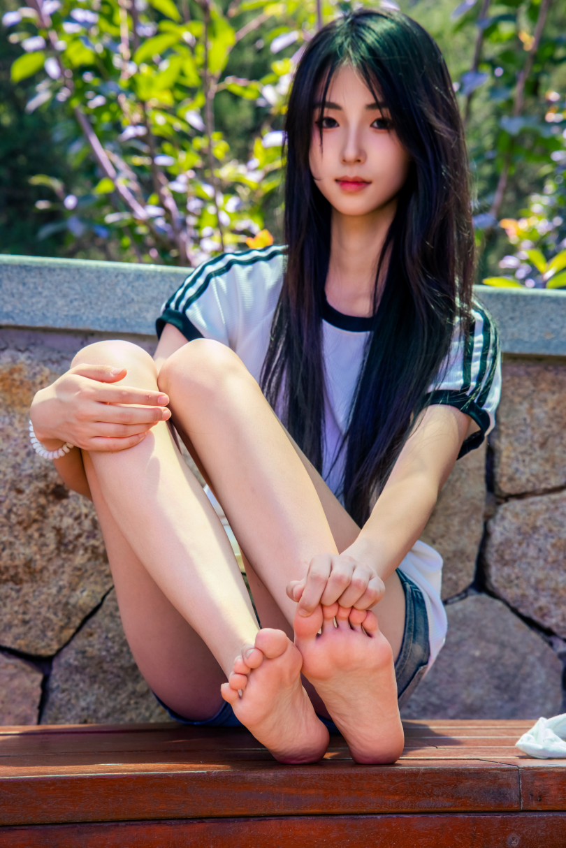 足愉心摄影第51期:模特小瑶(搭配:T恤、牛仔短裤、白棉袜、帆布鞋、裸足)