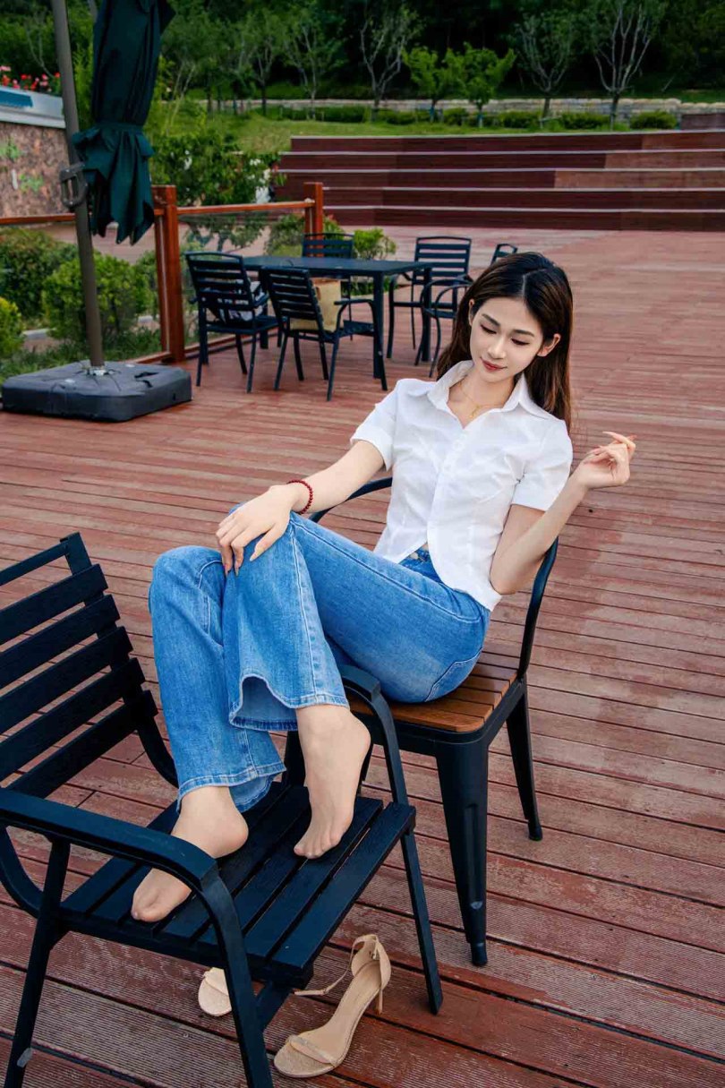 足愉心摄影第48期:模特沐晴(搭配:白衬衣、牛仔长裤、肉色丝袜、浅色高跟鞋)
