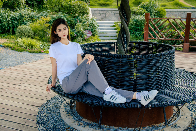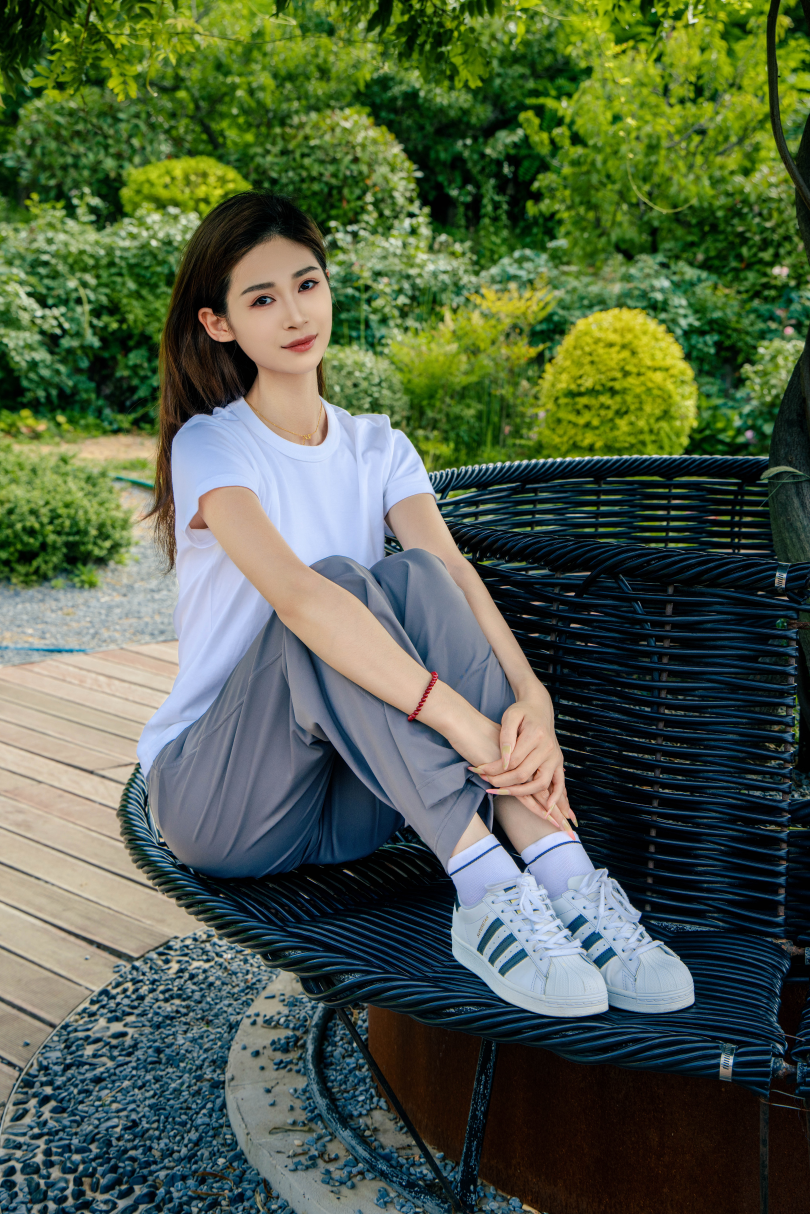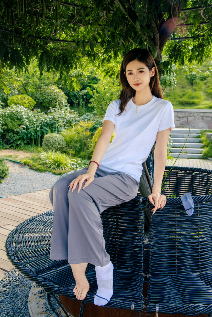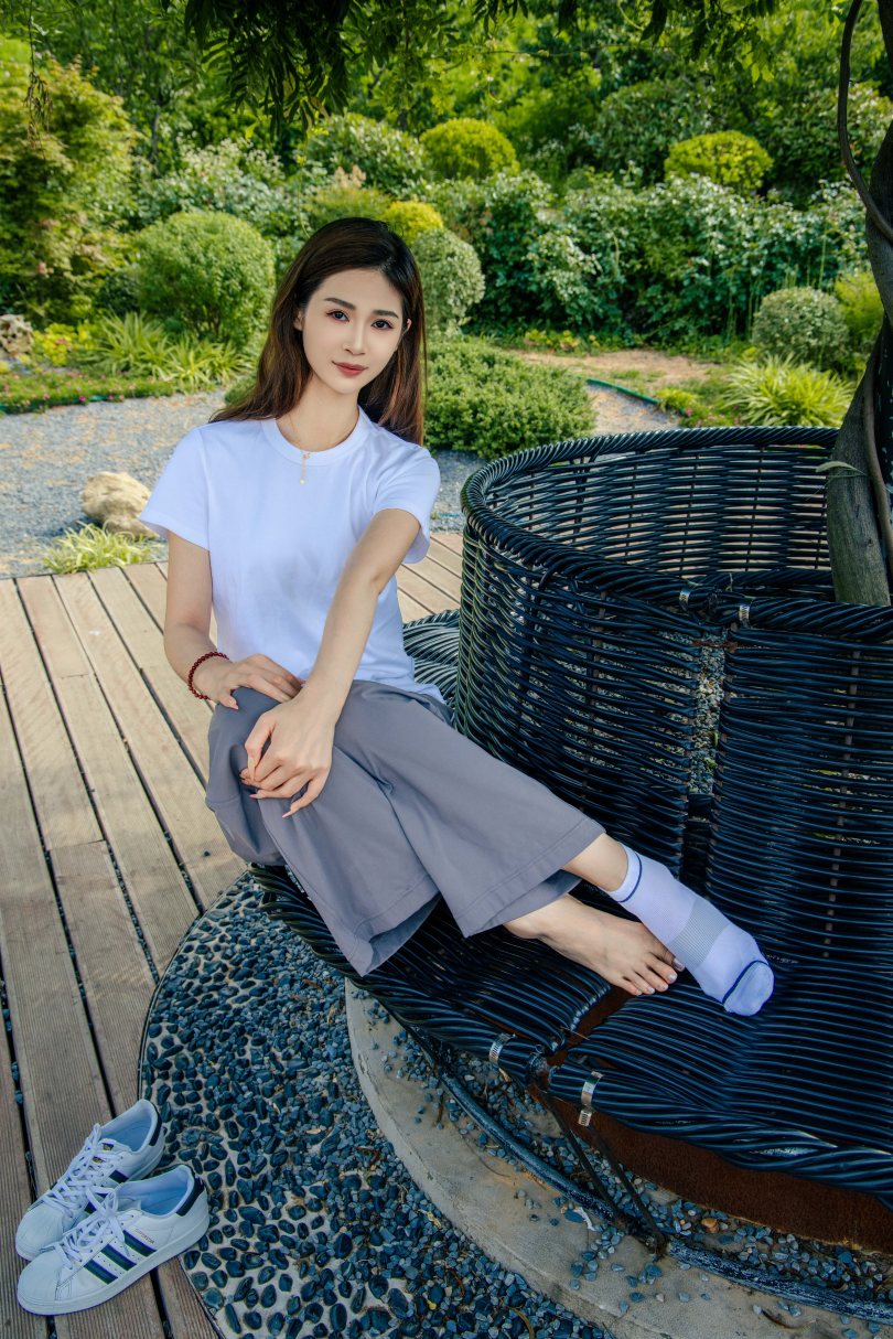 足愉心摄影第46期:模特沐晴(搭配:白T恤、灰色长裤、白色棉袜、贝壳头鞋)