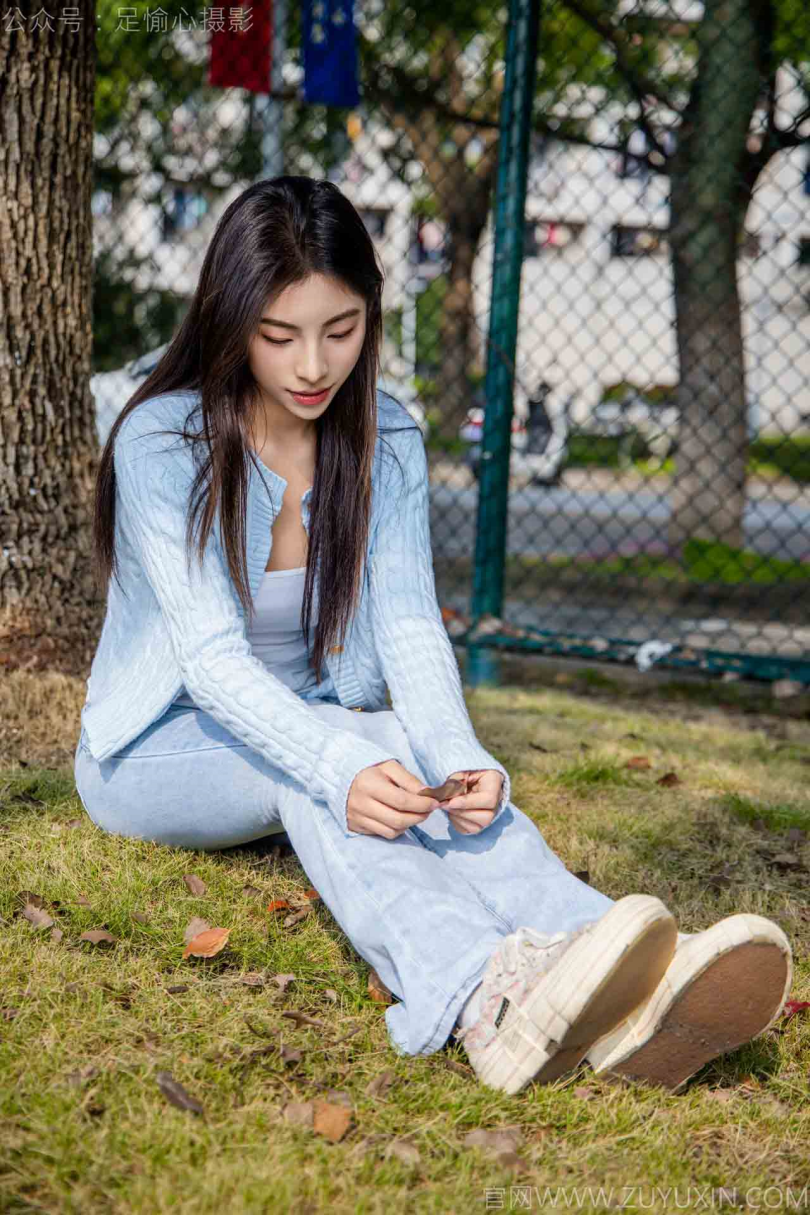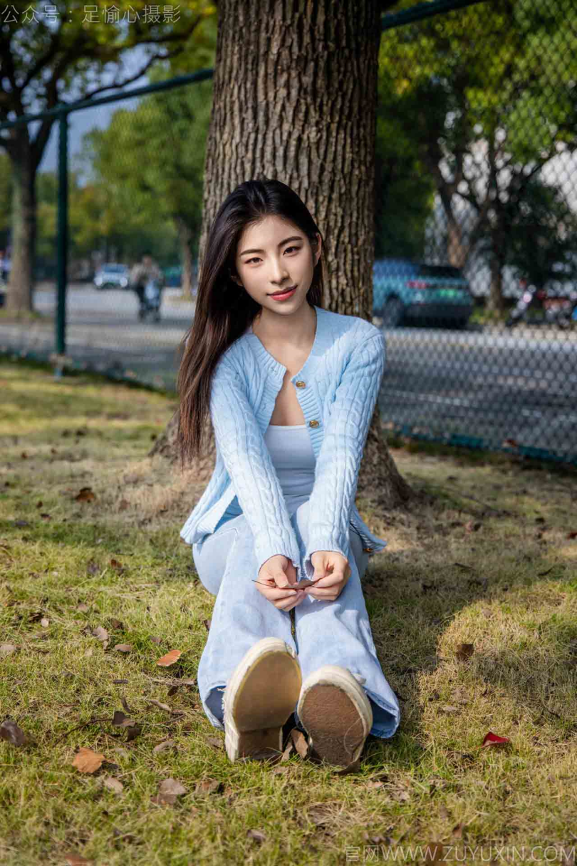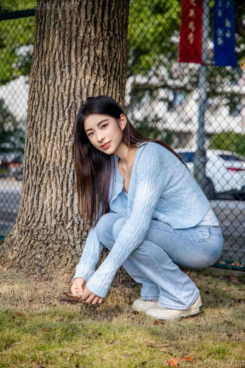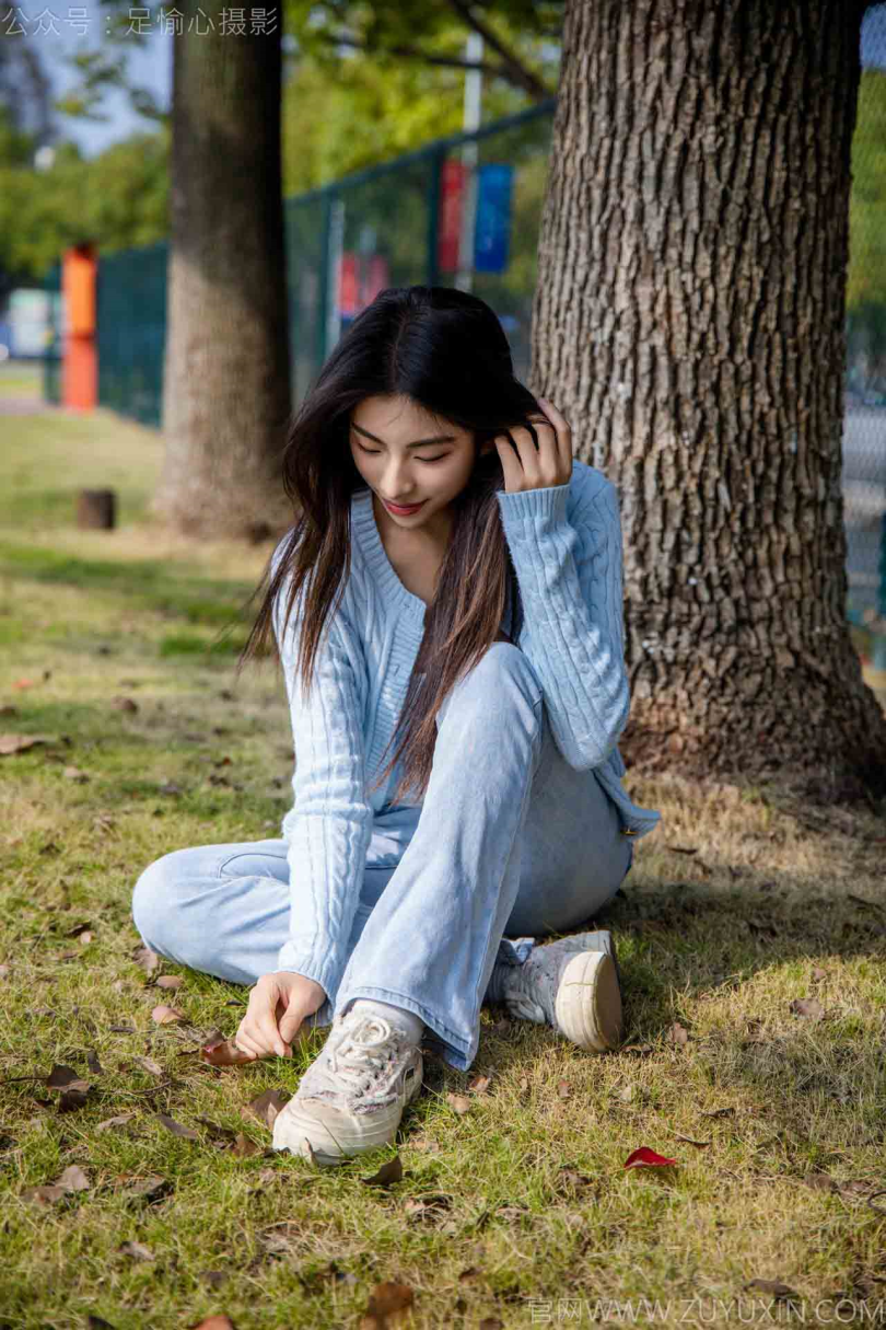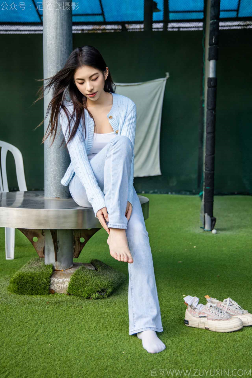 足愉心摄影第25期:模特凡凡(搭配:蓝色针织外套、蓝色抹胸、牛仔裤、帆布鞋、白棉袜、裸足)