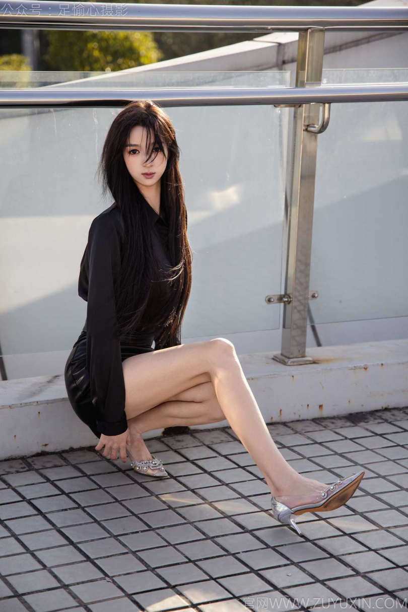 足愉心摄影第20期:模特云悦(搭配:黑色衬衫、皮裙、高跟鞋、裸足)