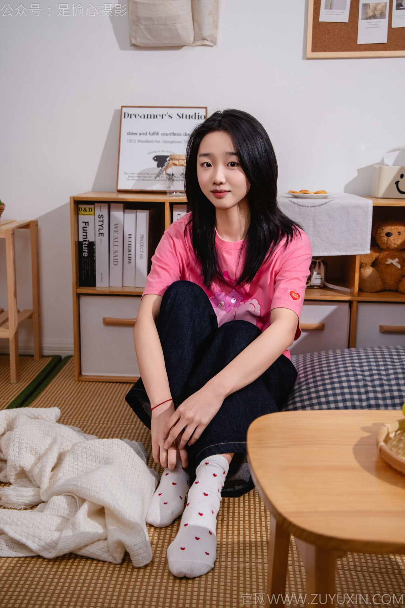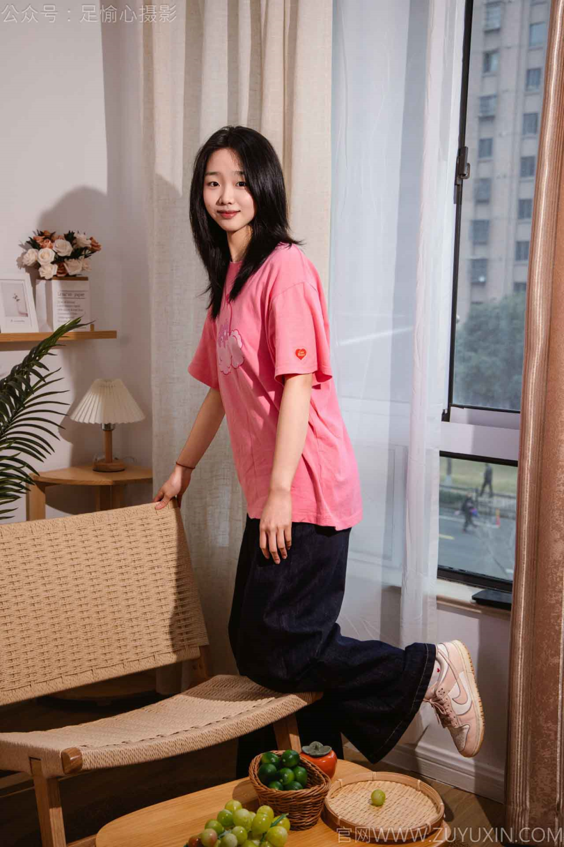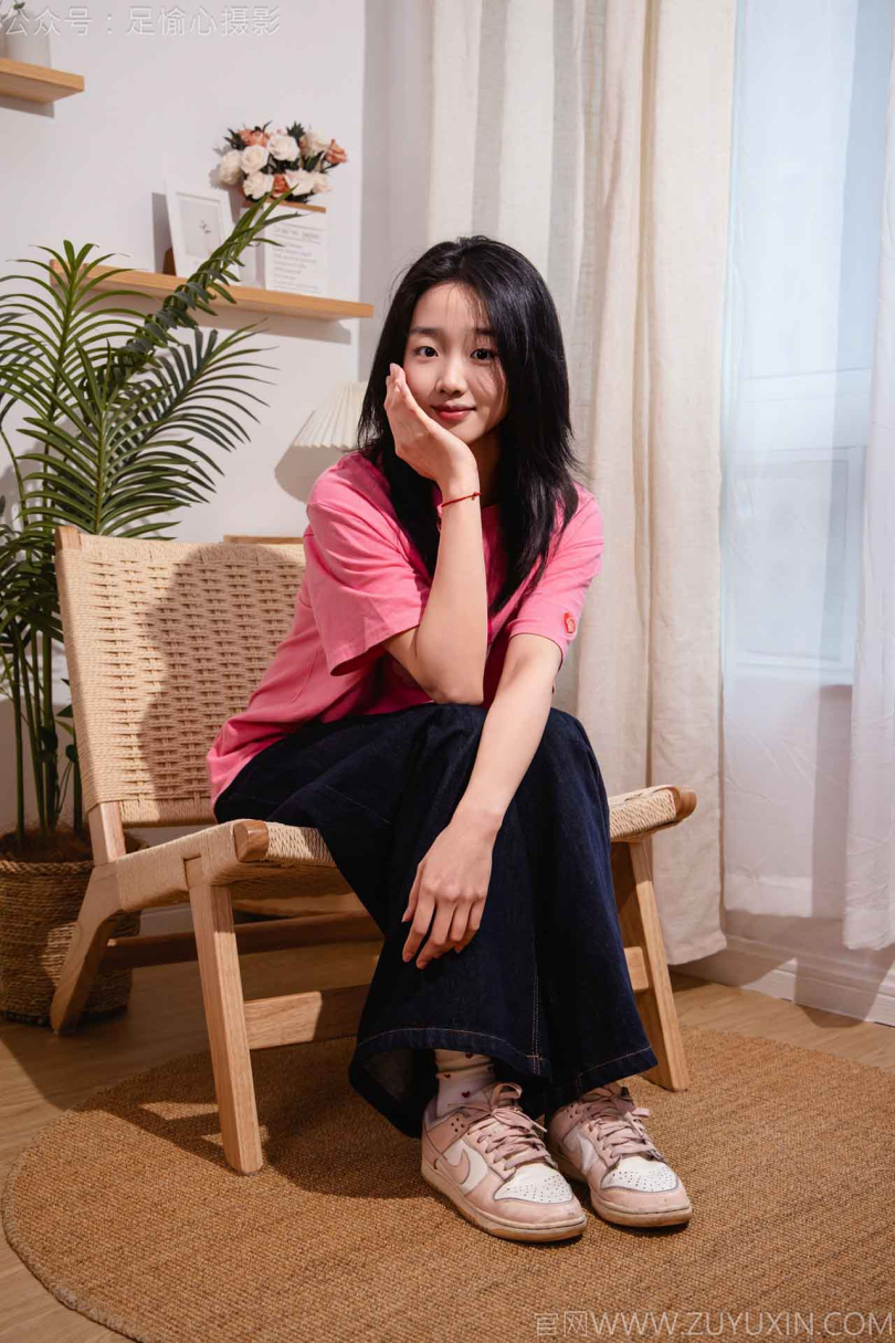 足愉心摄影第18期:模特奶芙(搭配:粉色T恤、牛仔长裤、运动鞋、白色棉袜、裸足)