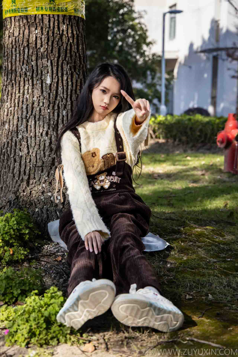 足愉心摄影第11期:模特果酱(搭配:卡通毛衣、棕色背带裤、板鞋、白色棉袜、裸足)