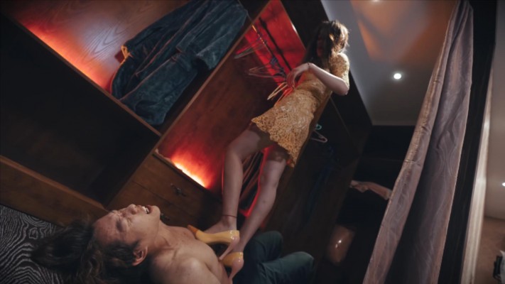 接着老板娘将他带到售鞋间,发现了他有很多银行卡,趁机会敲诈他一笔,要求他买下所有滞销的鞋,而且是抬高多倍的价格出售,并让他用肉身给自己试鞋...