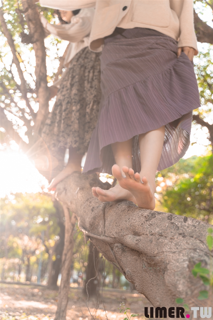 陽光透過葉子的縫隙灑落,為她們的腳背披上一層柔和的光暈,凸顯出白淨的美感,顯得格外誘人。