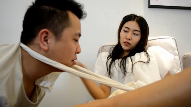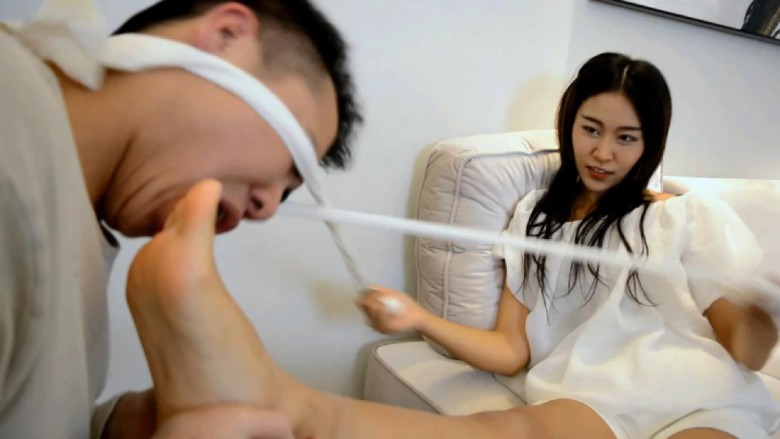 然后又用丝袜牵着脖子让他舔脚,m真是又累又痛的,但不敢怠慢,忍着痛用舌头伺候女王...