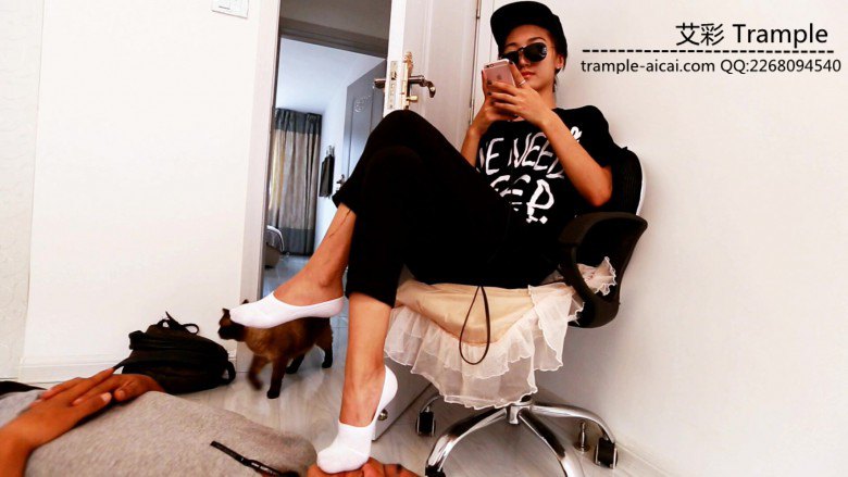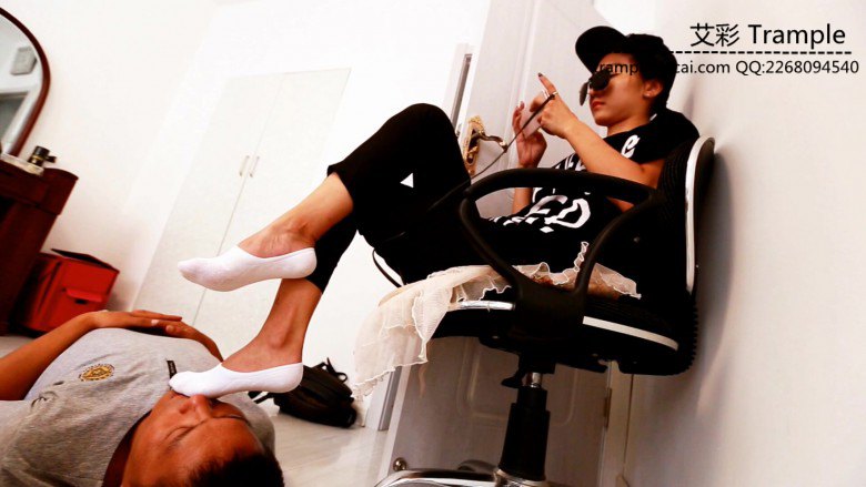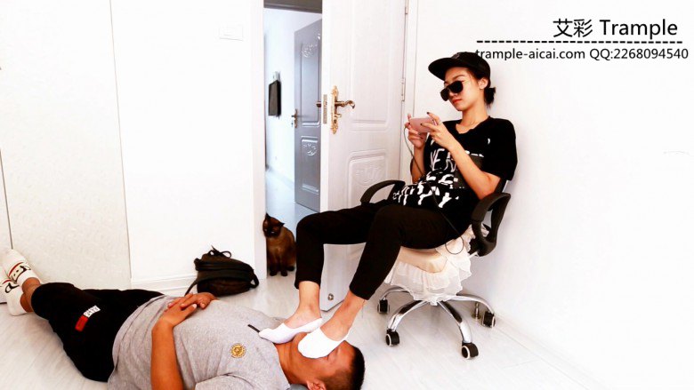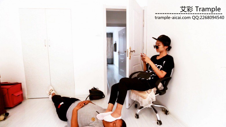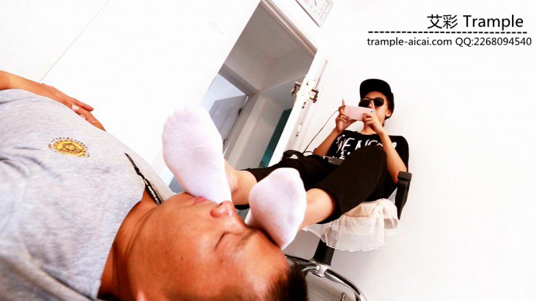 酷酷小女生 晶钰白色船袜踩脸玩音乐游戏 第一次拍摄却一点都不害羞 踩着陌生大叔的脸 堵住口鼻 大叔只能透过她的脚底和袜子艰难的呼吸被过滤了的空气 晶钰的脚打着节拍玩着游戏听着音乐 一直到拍摄完也没有问候一声这位大叔 似乎从看见大叔第一眼就没把他当人